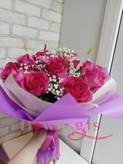 Прелестная флористическая композиция «Теплая встреча» состоит из розовых полураспустившихся бутонов и утонченной зелени. Душевный и весьма органичный вид букету придают насыщенный оттенок роз и не менее прекрасная упаковка из тонкой бумаги в нежно-фиолетовом цвете с дополнением струящейся шелковой ленты.